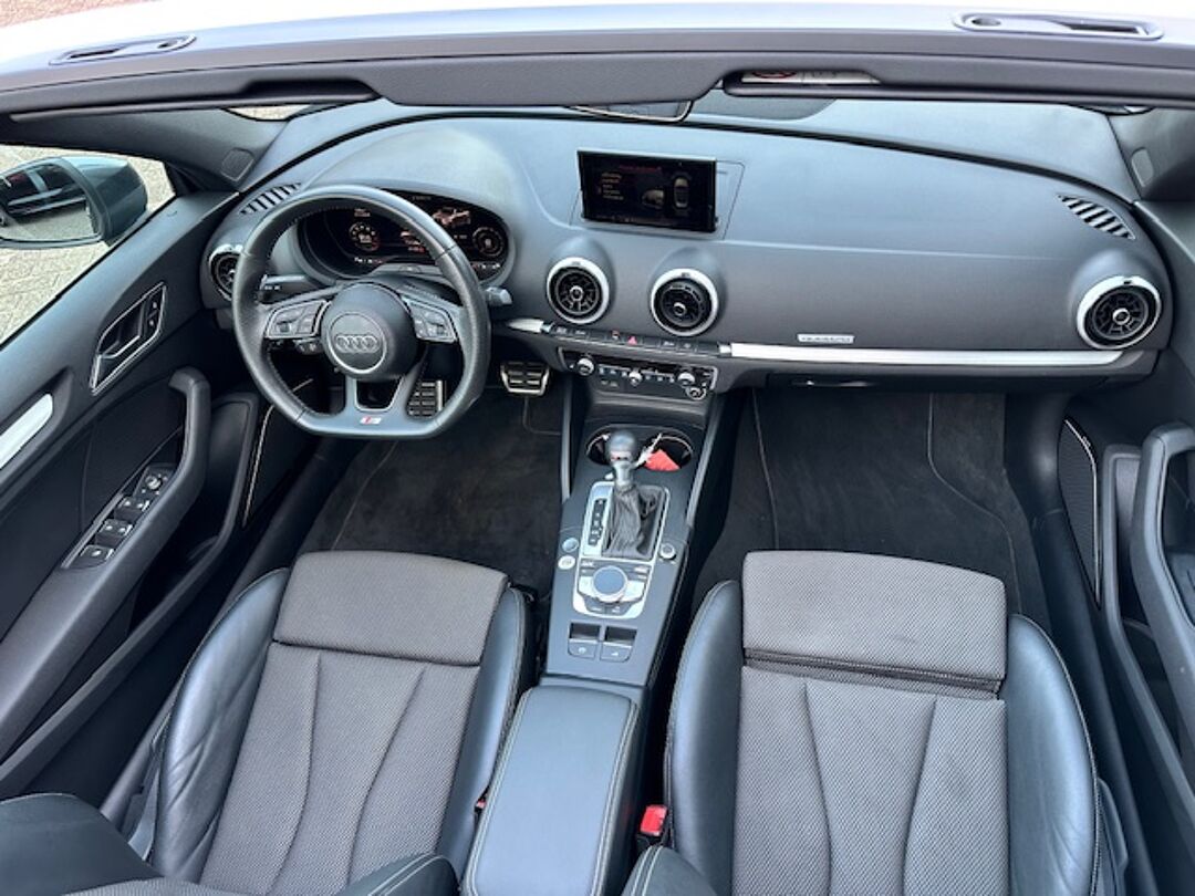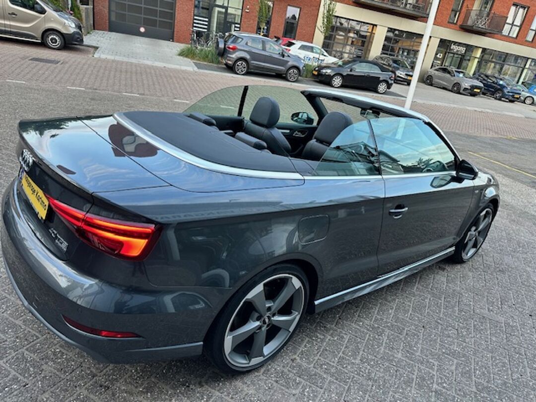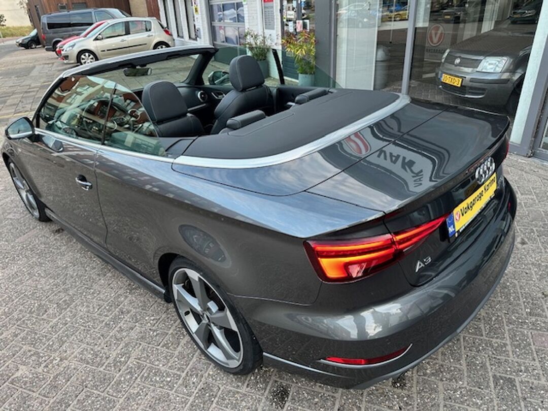 Zodra de zon zich laat zien, kunt u heerlijk genieten achter het stuur van deze cabriolet. Met een auto als deze Audi A3 2.0 Cabriolet komt u absoluut goed voor de dag. Lekker sportief en een tikkie stoer: de S-Line styling geeft een hele dynamische uitstraling. Met zijn benzinemotor en automatische transmissie is dit een prima auto voor nog vele kilometers. Koude start? Niet met de verwarmbare voorstoelen! Opvallend zijn de stoere sportstoelen, die zorgen voor een onwrikbare zit in de scherpe bochten. Tot de uitrusting van deze Audi behoren ook 18 inch lichtmetalen velgen, LED koplampen, sportonderstel, halflederen bekleding, warmtewerend glas en LED-achterlichten.