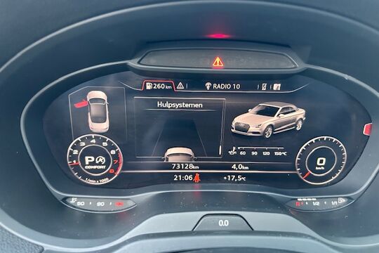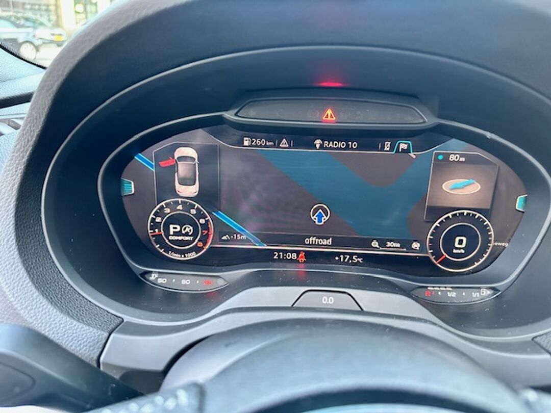 Dankzij het digitale dashboard in deze auto kan u de interface van uw cockpit personaliseren. Adaptive cruise control houdt de ingestelde snelheid vast en houdt afstand tot het voertuig voor u. Onder alle omstandigheden een volmaakt geluid onderweg: het high performance audiosysteem zorgt ervoor. Altijd een deskundige gids aan boord, dankzij het navigatiesysteem met harde schijf. De sensoren van de achteropkomend verkeer waarschuwing houden zicht op de dode hoeken achter u. Te weinig afstand tot de achterligger? Het systeem geeft direct een signaal. De Audi is standaard voorzien van: WIFI-hotspot, automatische airconditioning, schakelpaddles aan het stuur, digitale radio, parkeersensoren voor en achter en regensensor.
